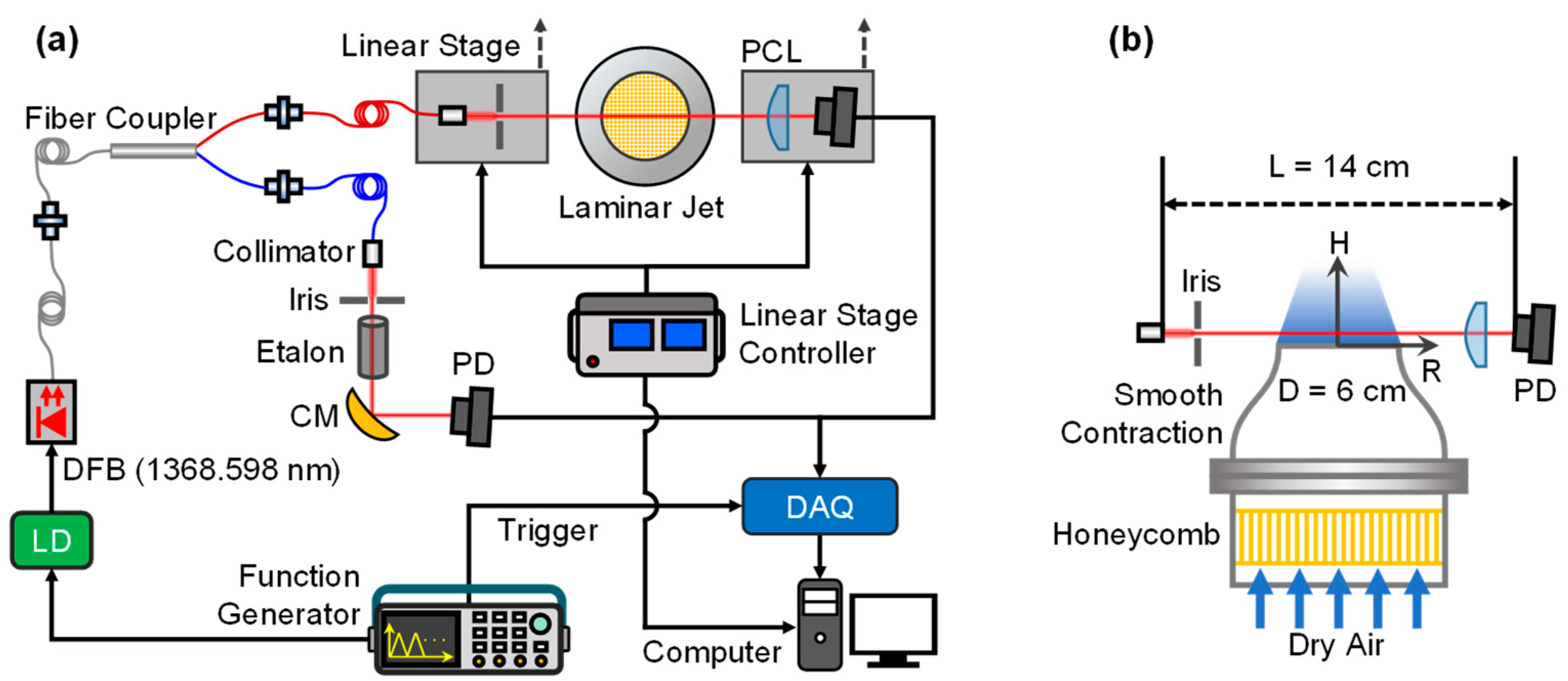 A distributed-feedback (DFB) laser served as the TAS laser source for the investigation of H2O transport in a dry laminar jet. Wavelength Electronics’ LDTC0520 laser diode and temperature controller provided stable drive current and temperature control for the DFB laser with noise of 7.5 µA RMS, high temperature accuracy and 0.005°C stability, ensuring minimal noise was added to the photodetector after TAS.