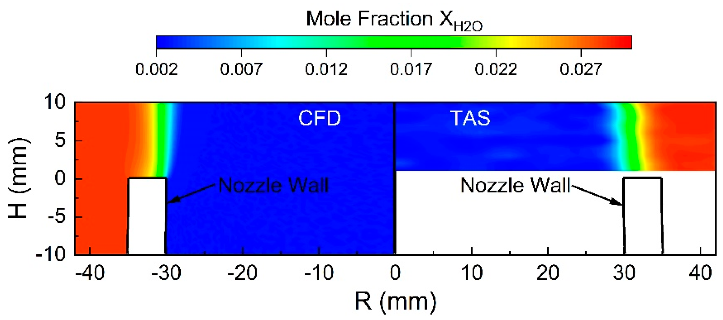 2O mole fraction distribution from the laminar jet into ambient air.