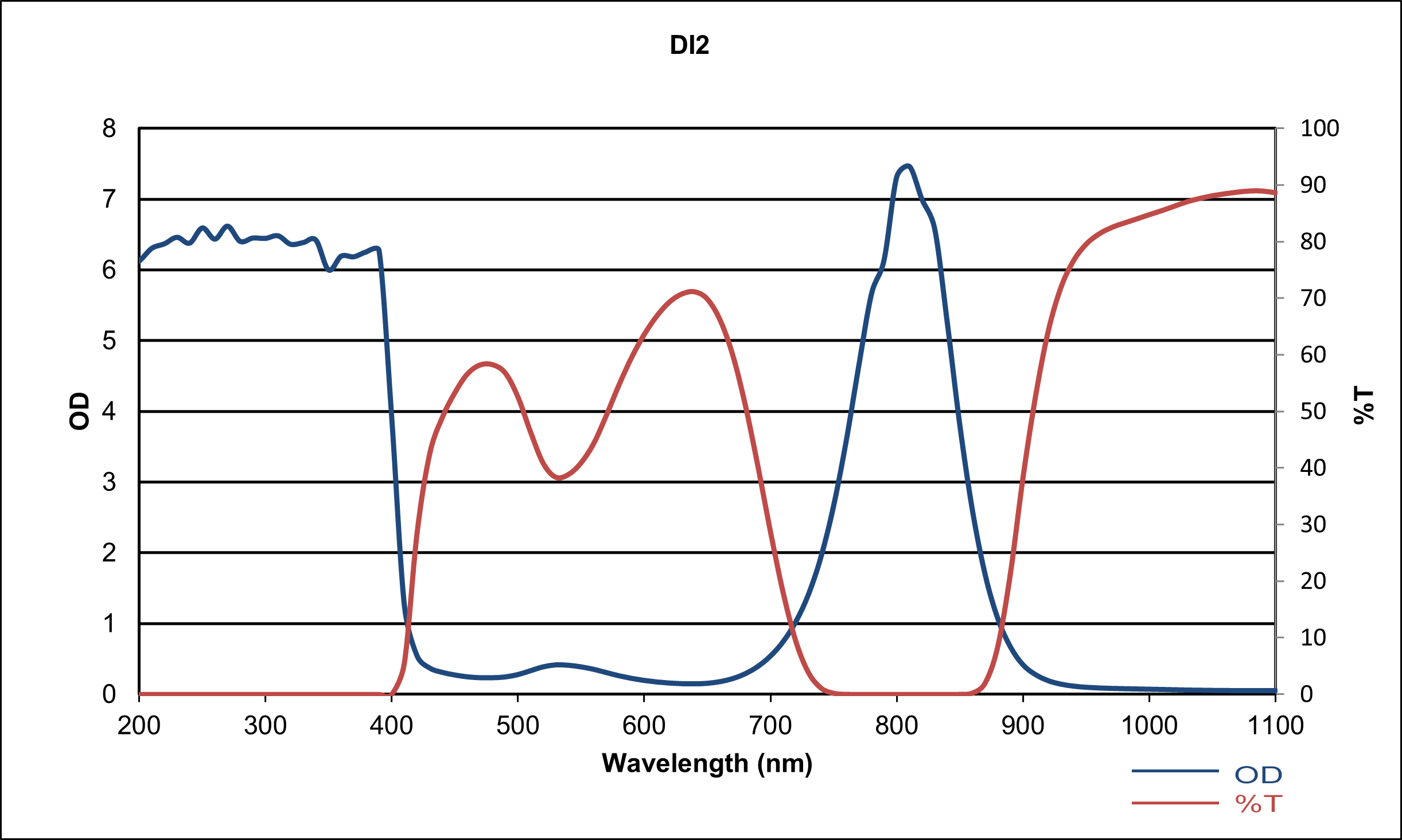 The DI2 filter is designed for IR wavelengths and provides high VLT. It is suited for short IR, ultrafast, medical, dental and scientific applications.
