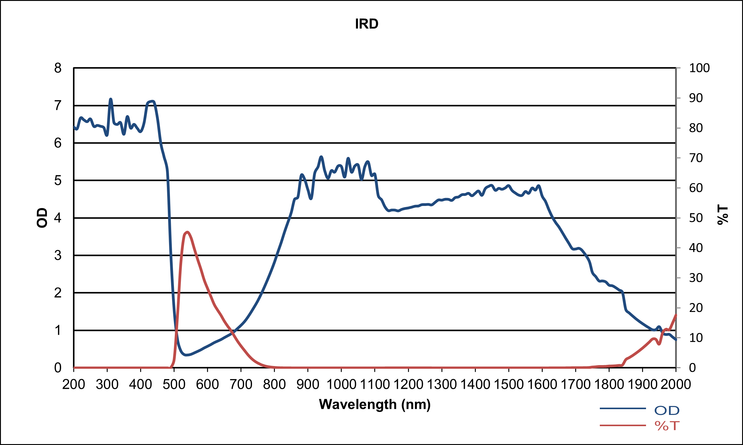 The IRD filter provides a wide range of near-IR coverage. It is suited for telecomm, scientific, and aesthetic/dermatology applications.