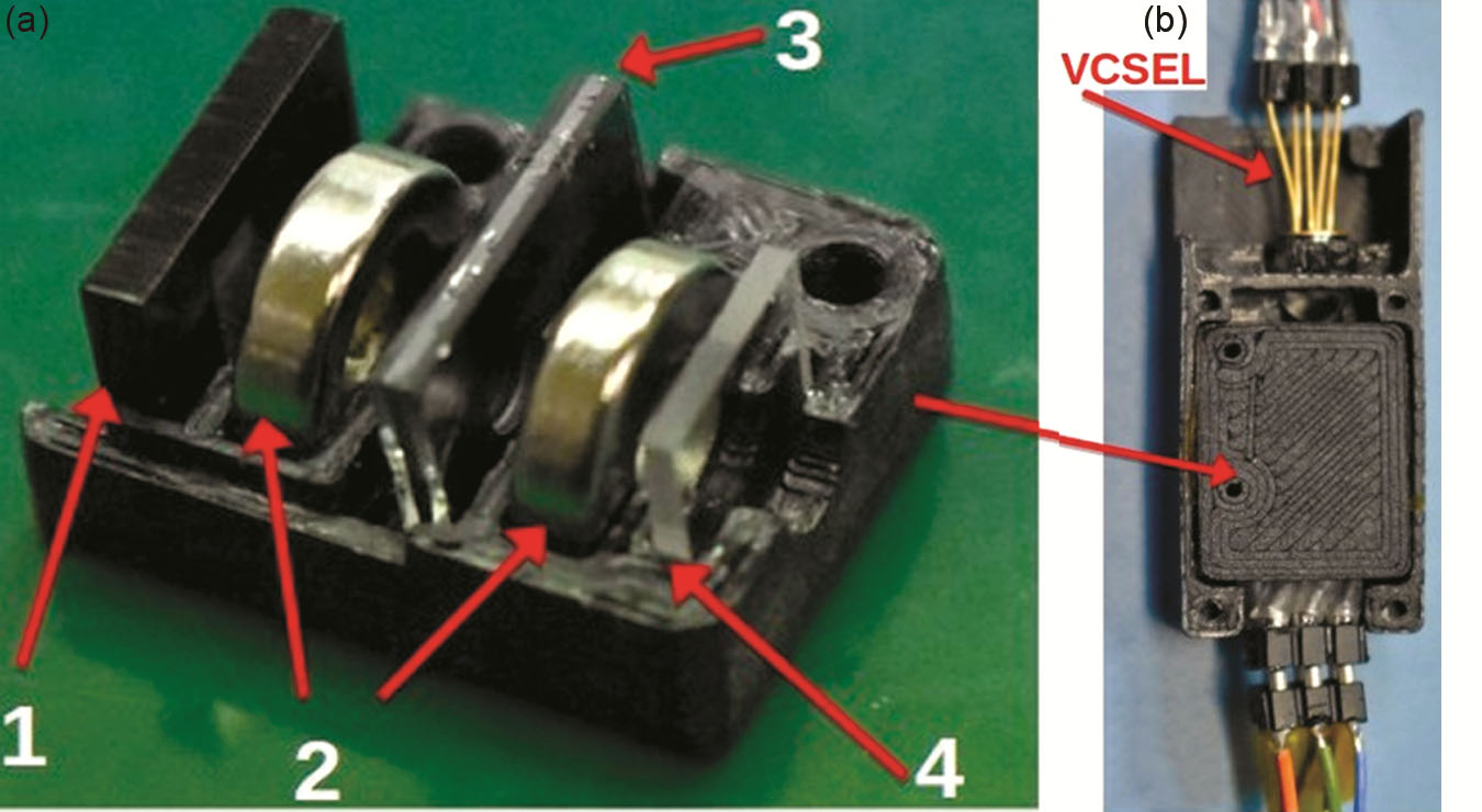 Researchers from the Indian Space Research Organization in Bengaluru, India have developed and demonstrated the absorption spectroscopic capabilities of a chip-scale Rubidium (Rb) atomic vapor cell using a thermoelectric cooler integrated VCSEL light source in a magneto-optic package. The custom 3D-printed design provides real time analysis of spectral data. With over 600 hours of data, absorption resonance lines were recorded and analyzed for transitions 85Rb and 87Rb with absorption amplitude and FWHM data agreeing with known literature values.